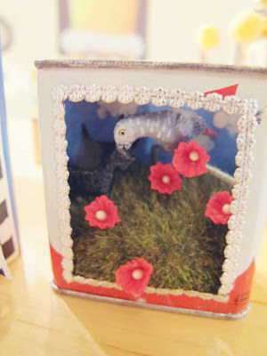 I have to agree with yesterday's comment that your students work is excellent. I wasn't expecting to be so impressed but they are so interesting and charming. I am head-over-heels in love with the shadow boxes in the old tins. I might be heading to my favorite antique store for a few tins….